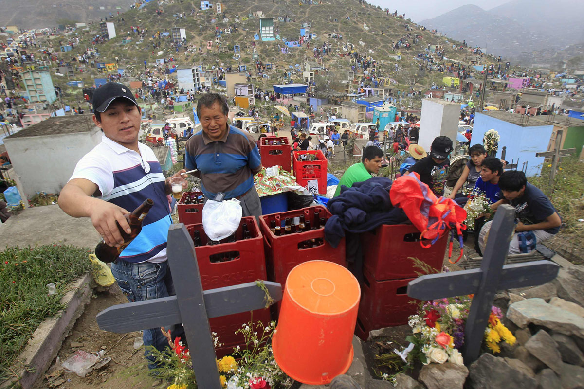 Many people in Peru come to the cemetery to have a drink with their deceased loved ones now and then.