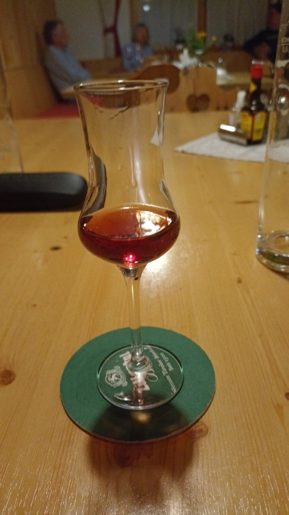 The most common distilled drink you will find in Tyrol is called Obstler. The word Obst is German for fruit. So yes you guessed it: Obstler can be made from any kind of fruit possible. Pear, apple, cherry, plum, apricot, peach, raspberry, blackcurrant are all popular ingredients for Obstler. One could play a ‘try-them-all-in-one-night-game’, but that could be a risky game for the unexperienced drinker.